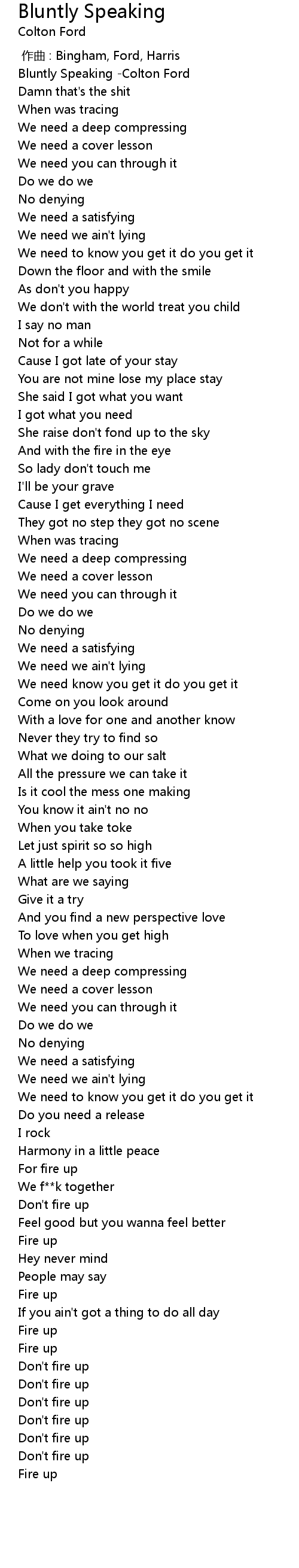 | [00:00.00] | Bluntly Speaking Colton Ford |