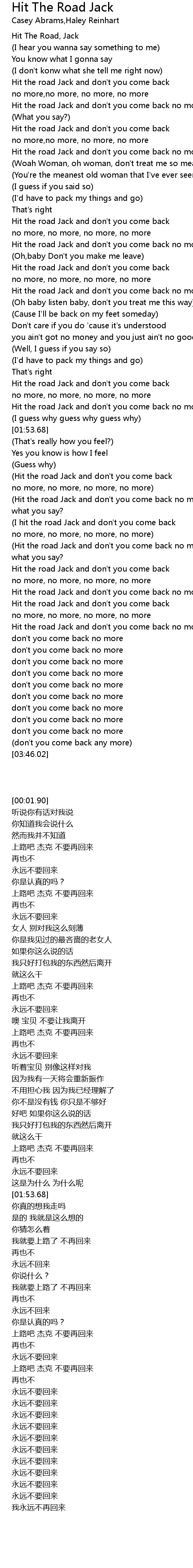 Hit the road Jack and don't you come back no more no more |