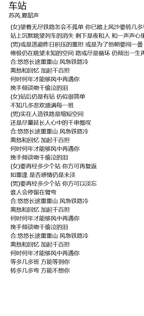 | [02:21.838] | (女)要再经多少个站 你方可再复返 |