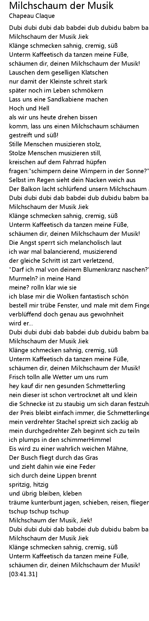 | [03:36.53] | sch umen dir, deinen Milchschaum der Musik! |