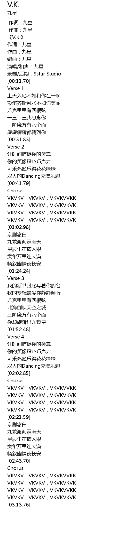| [02:57.66] | VKVKV, VKVKV, VKVKVKVK |