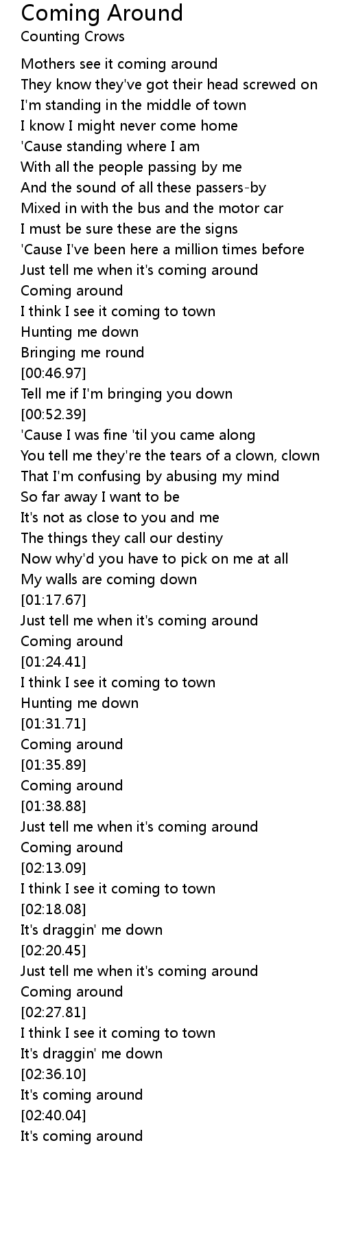 Just tell me when it's coming around |