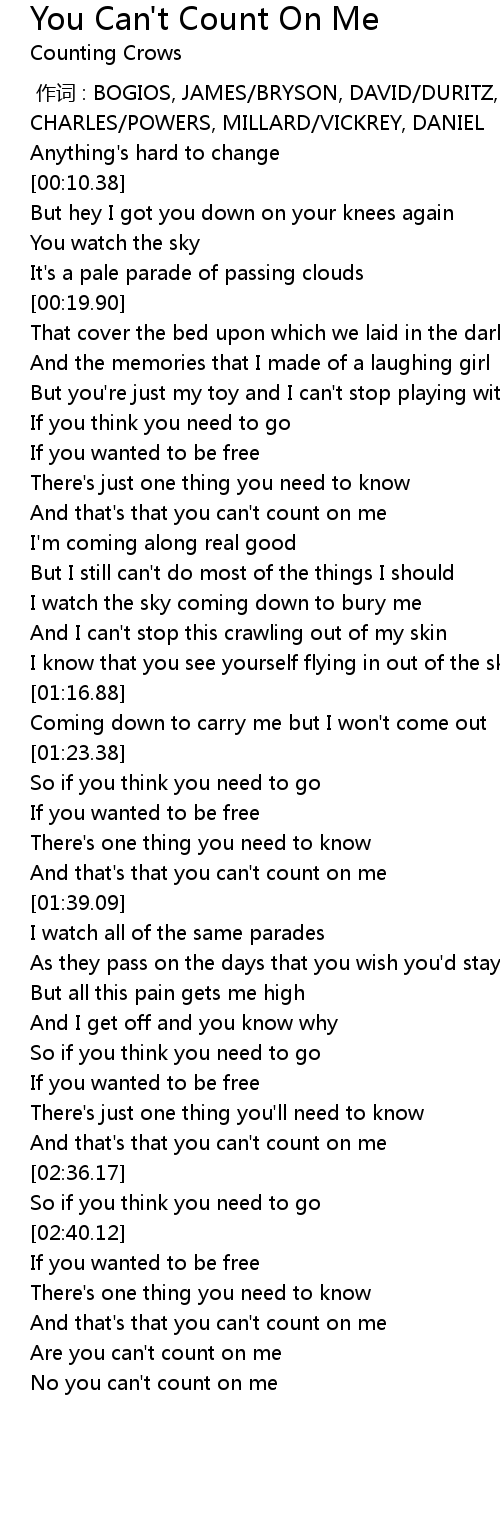 | [00:00.00] | 作词 : BOGIOS, JAMES/BRYSON, DAVID/DURITZ, ADAM/GILLINGHAM, CHARLES/POWERS, MILLARD/VICKREY, DANIEL |