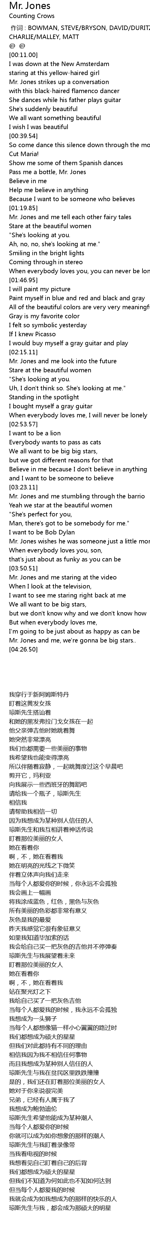 | [04:17.60] | Mr. Jones and me, we' re gonna be big stars.. |
