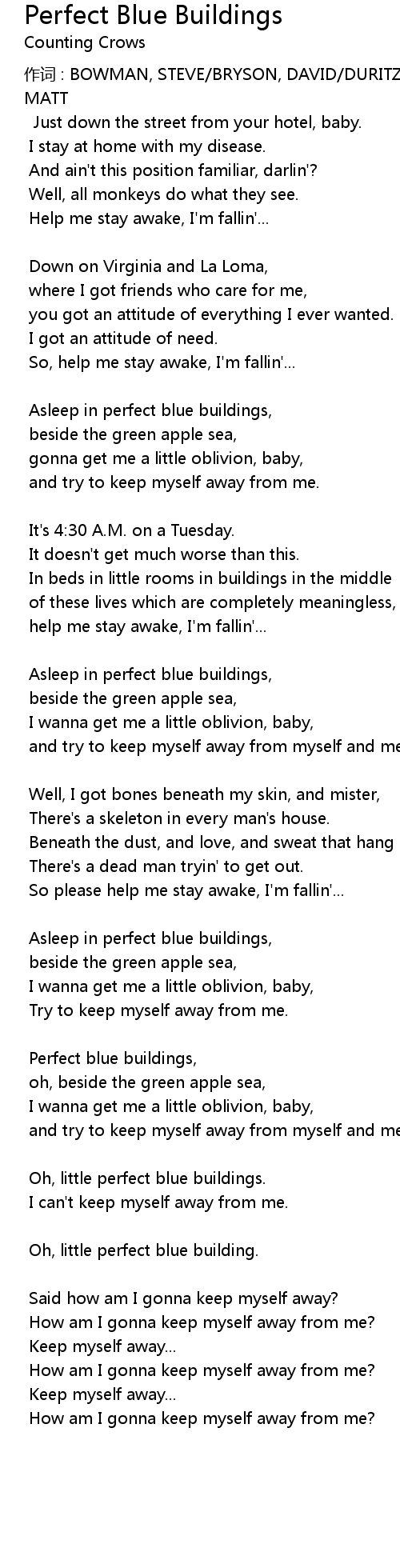| 作词 : BOWMAN, STEVE/BRYSON, DAVID/DURITZ, ADAM/GILLINGHAM, CHARLIE/MALLEY, MATT | |