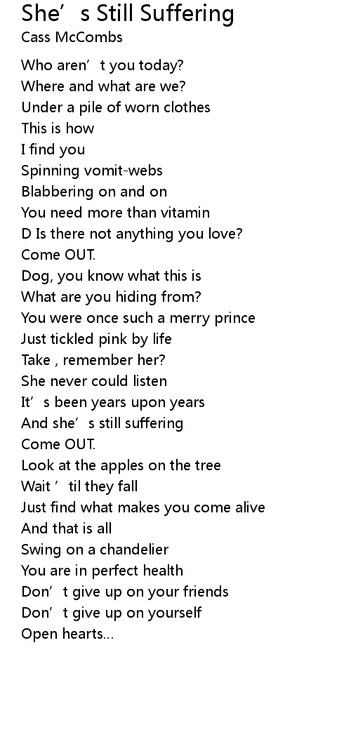 | Song | She’s Still Suffering |