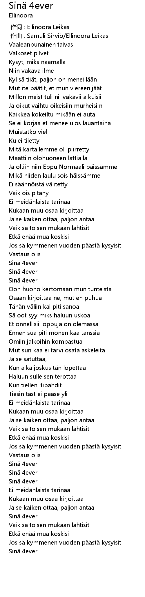 | [00:00.000] | zuò cí : Ellinoora Leikas |