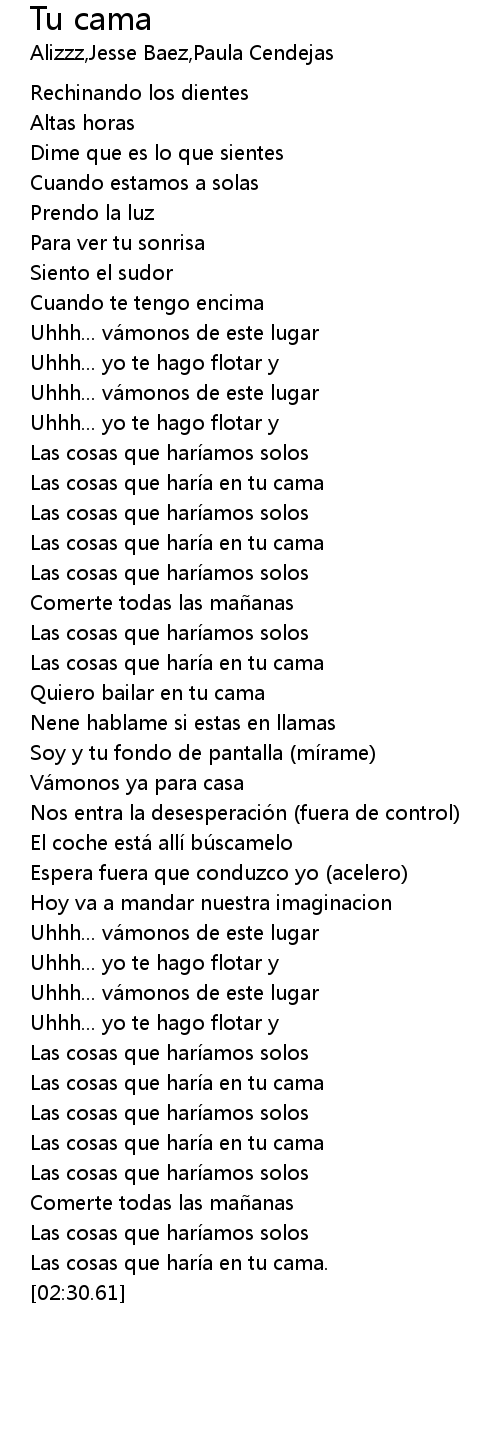 | [02:26.34] | Las cosas que hari a en tu cama. |