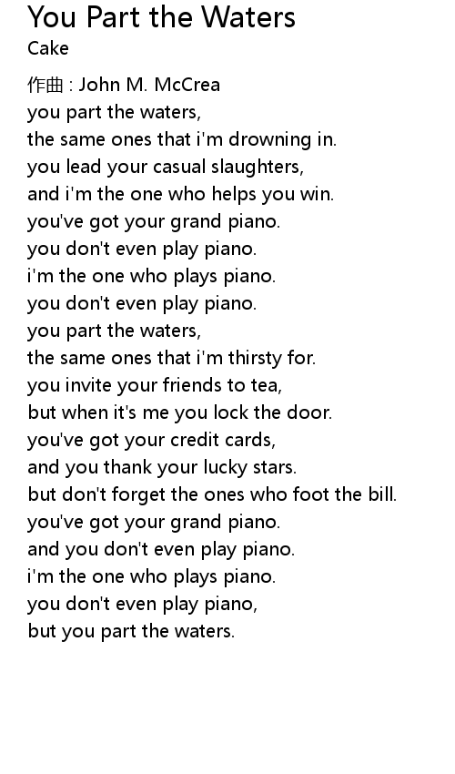 | Song | You Part the Waters |