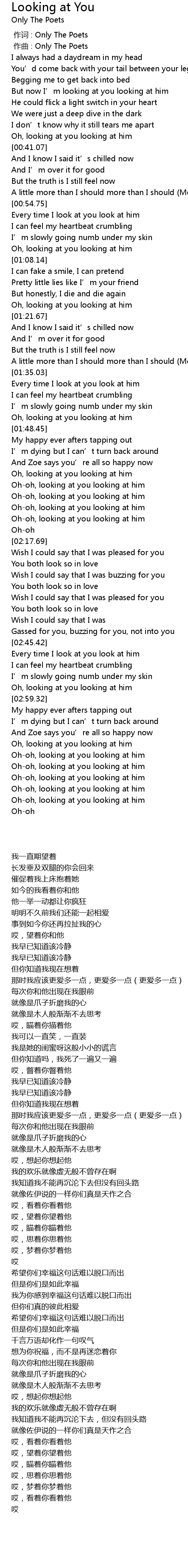| [03:26.78] | Oh-oh, looking at you looking at him |