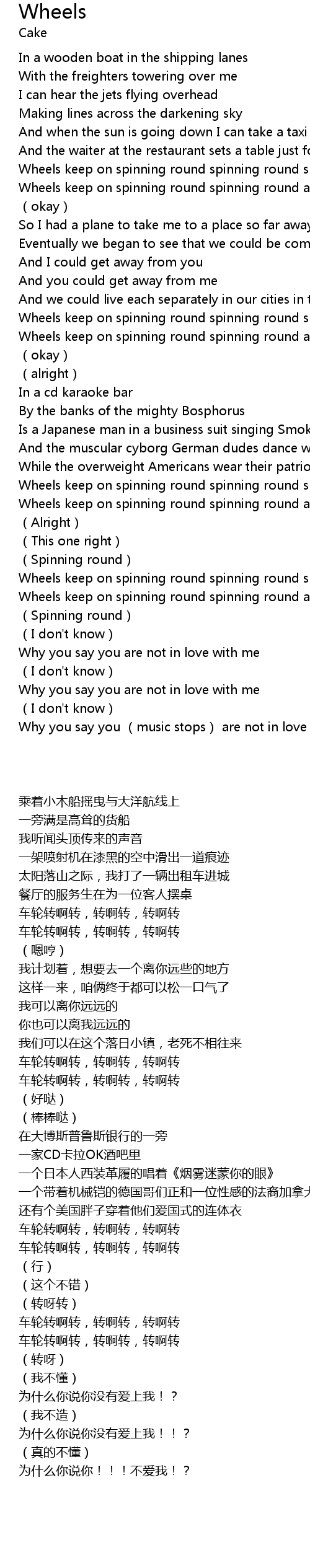 | [02:43.69] | Wheels keep on spinning round spinning round spinning round |
