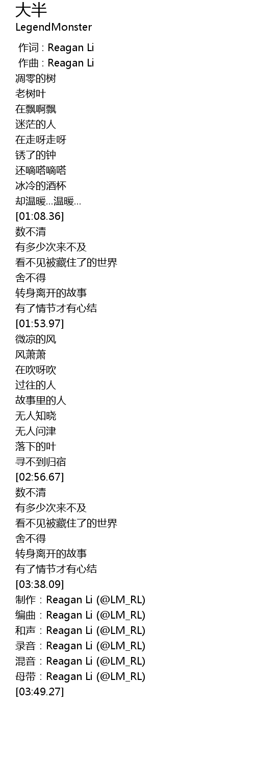 | [03:40.25] | 制作:Reagan Li (@LM_RL) |