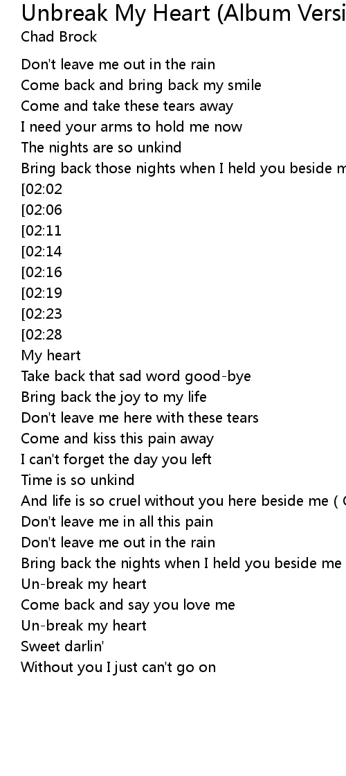 | [03:10][02:02][00:52] | Unbreak my heart |