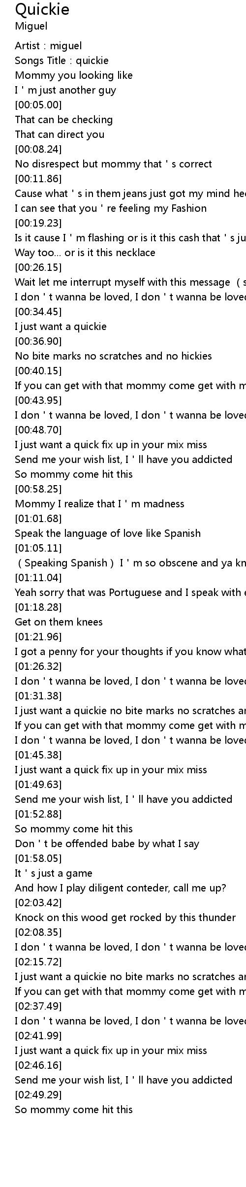 | [01:32.56] | I just want a quickie no bite marks no scratches and no hickies |