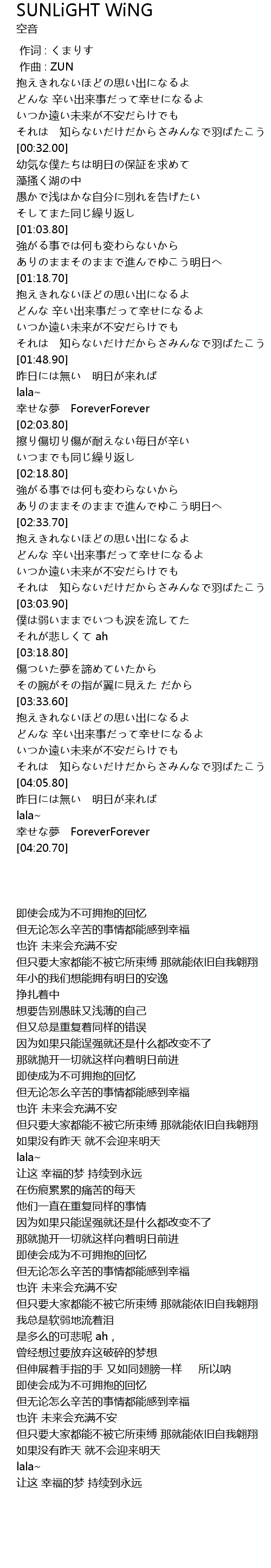 | [01:40.00] | それは 知らないだけだからさみんなで羽ばたこう |