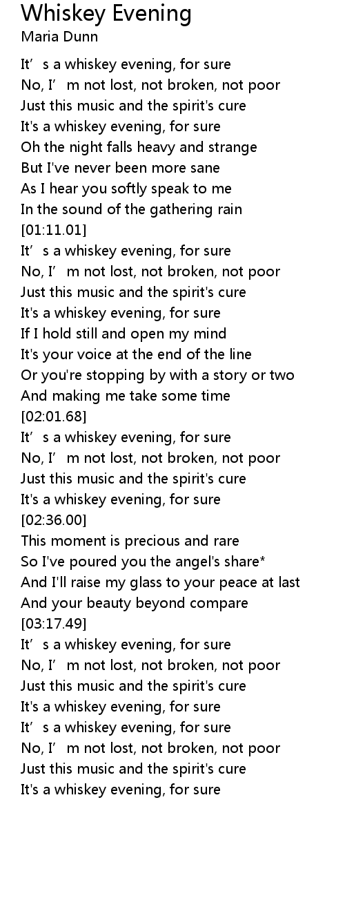 | [00:41.81] | It' s a whiskey evening, for sure |