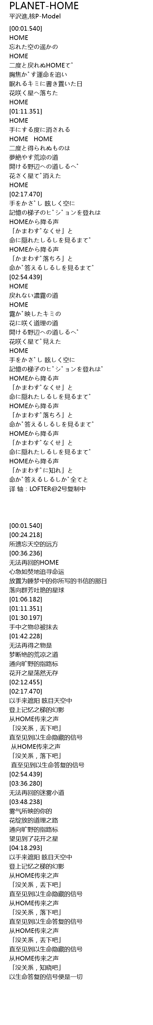 | [00:42.261] | 二度と戻れぬHOMEで |