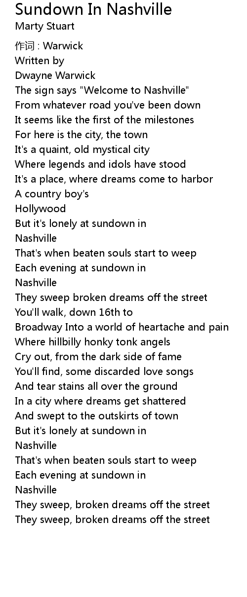 | Song | Sundown In Nashville |