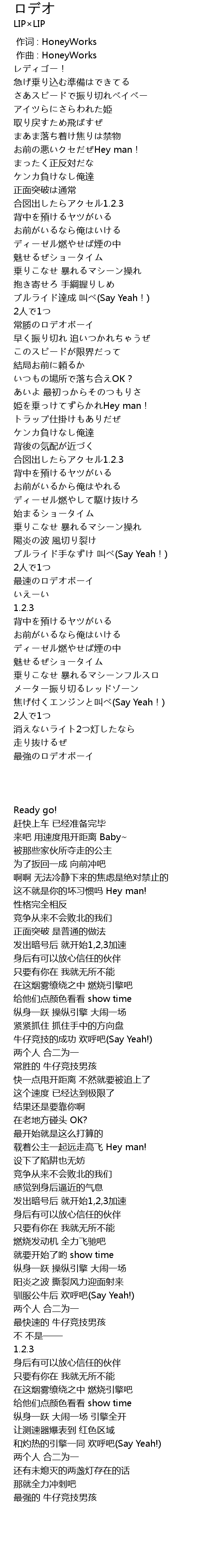 | [01:03.10] | ブルライド達成 叫べ(Say Yeah!) |