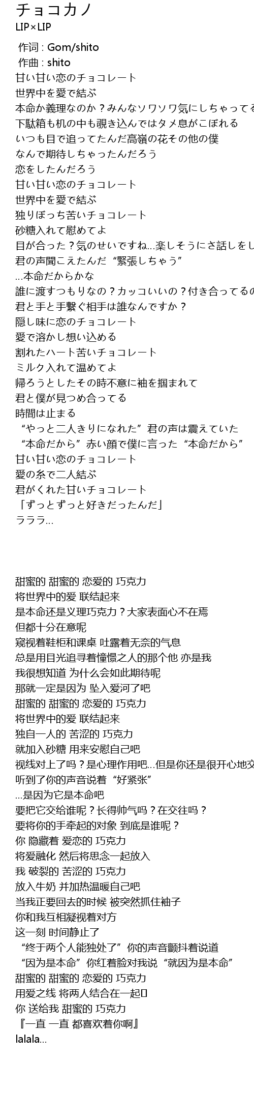 | [00:00.64] | 甘い甘い恋のチョコレート |