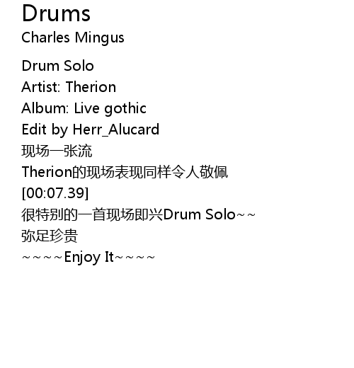 | [00:08.39] | 很特别的一首现场即兴Drum Solo~~ |