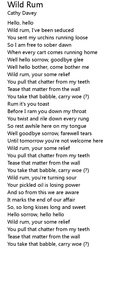 Wild rum, your some relief |