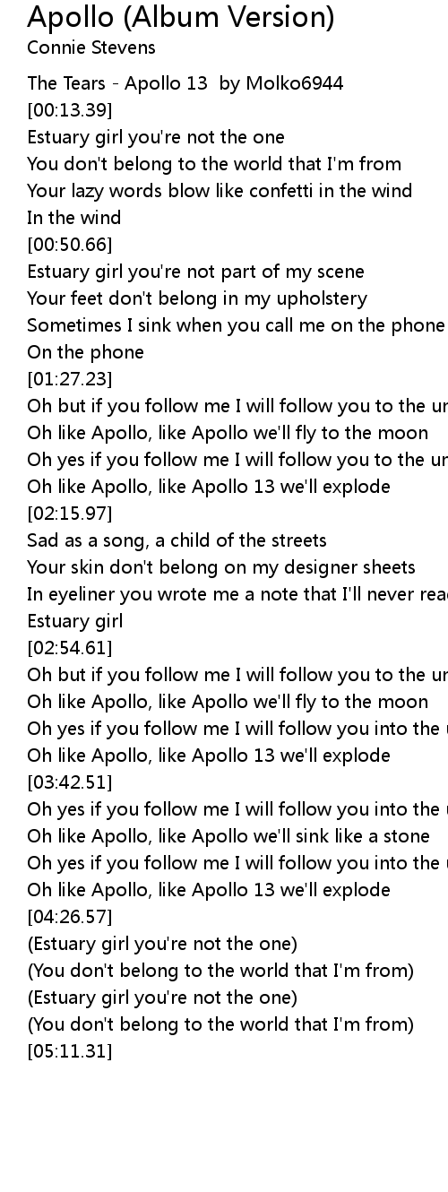Oh like Apollo, like Apollo we'll sink like a stone |