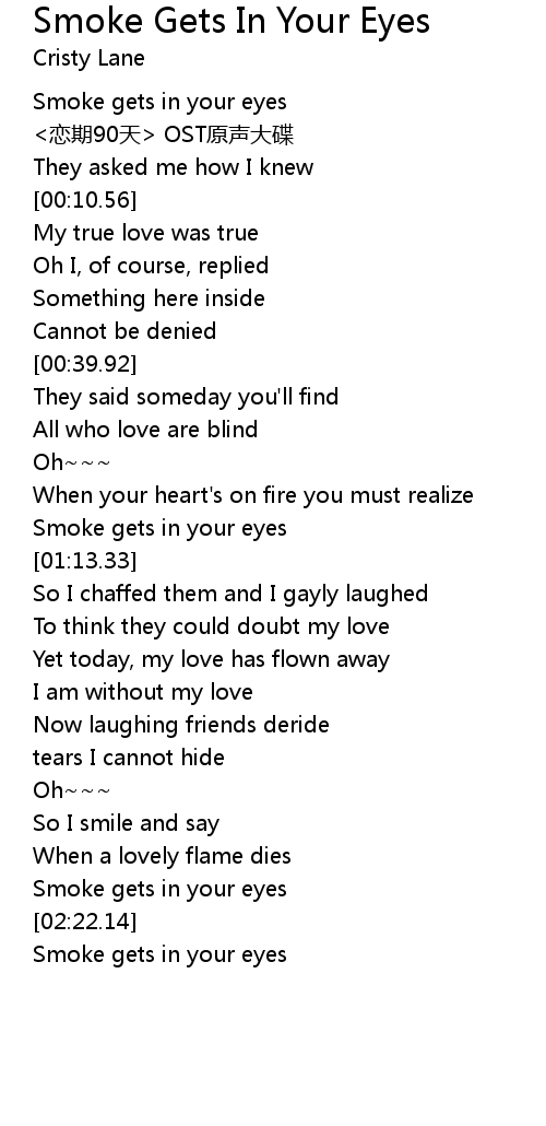 | [00:04.30] | Smoke gets in your eyes |