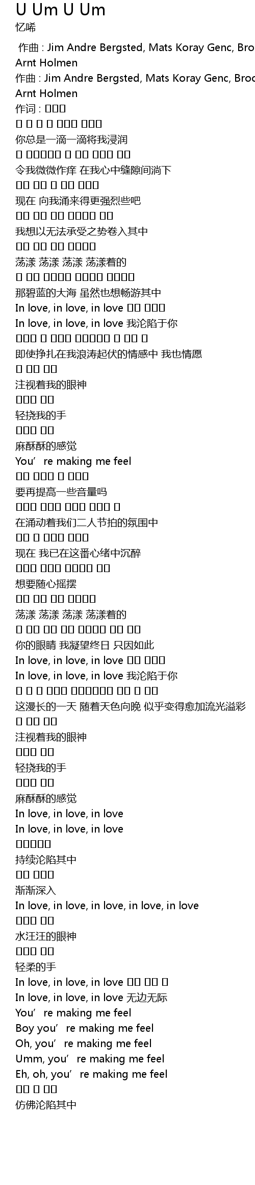 | [00:39.430] | In love, in love, in love wo lun xian yu ni |