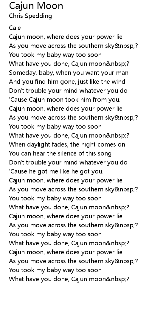 Cajun moon, where does your power lie |
