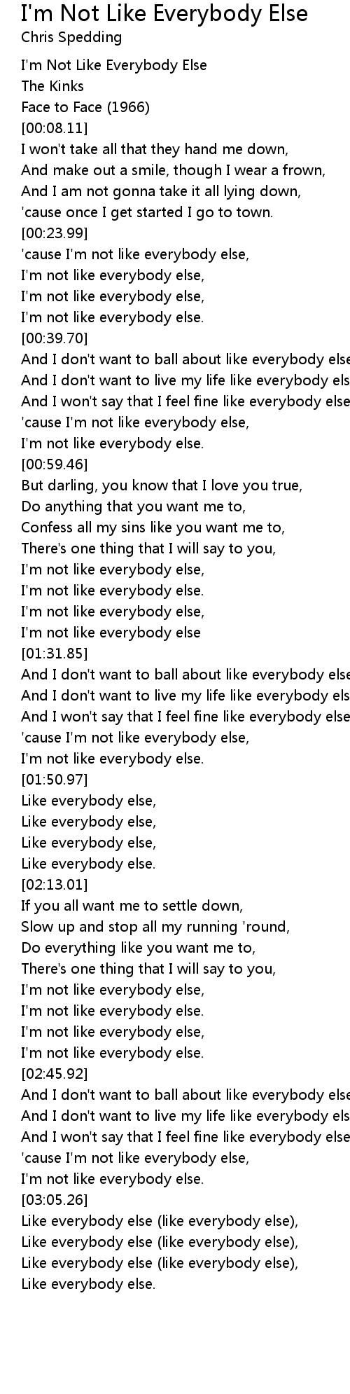 I'm not like everybody else, |