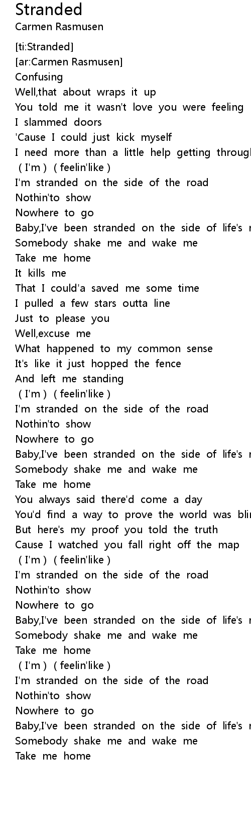 | [00:53.29] | Baby,I've been stranded on the side of life's road |