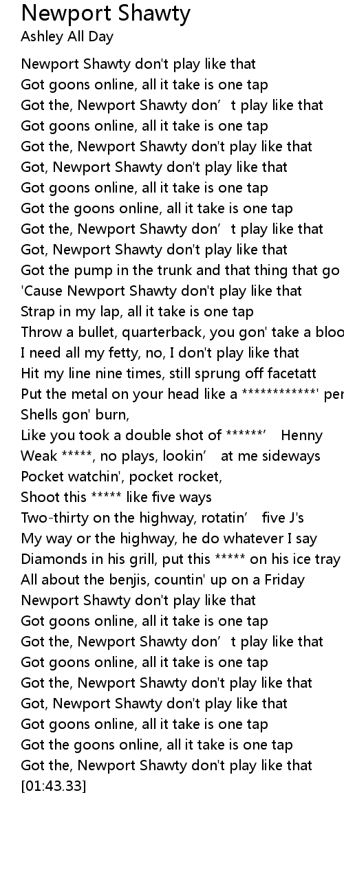 | [00:35.92] | Got, Newport Shawty don't play like that |