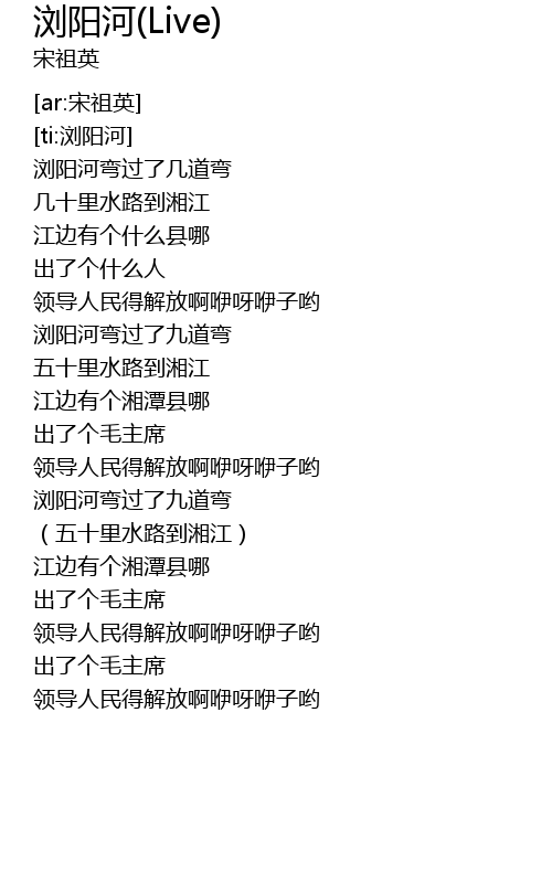 | [01:43.40] | 浏阳河弯过了九道弯 |