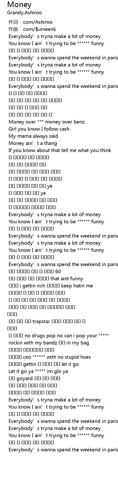 | [01:37.211] | Everybody' s tryna make a lot of money |