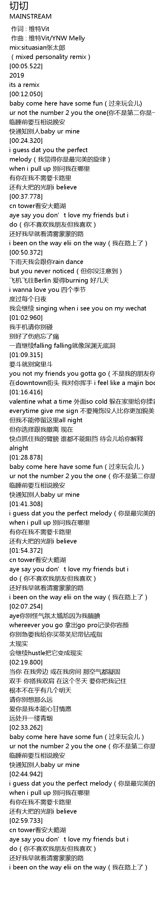 | [01:41.772] | i guess dat you the perfect melody(你是最完美的旋律) |