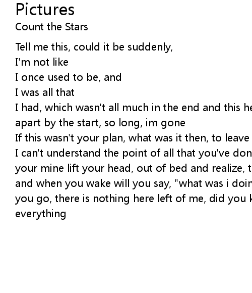I can't understand the point of all that you've done with your time, in pictures your mine lift your head, out of bed and realize, that everything else is a lie, and when you wake will you say, "what was i doing that day" did you know when you go, there is nothing here left of me, did you know when you go, you take everything |