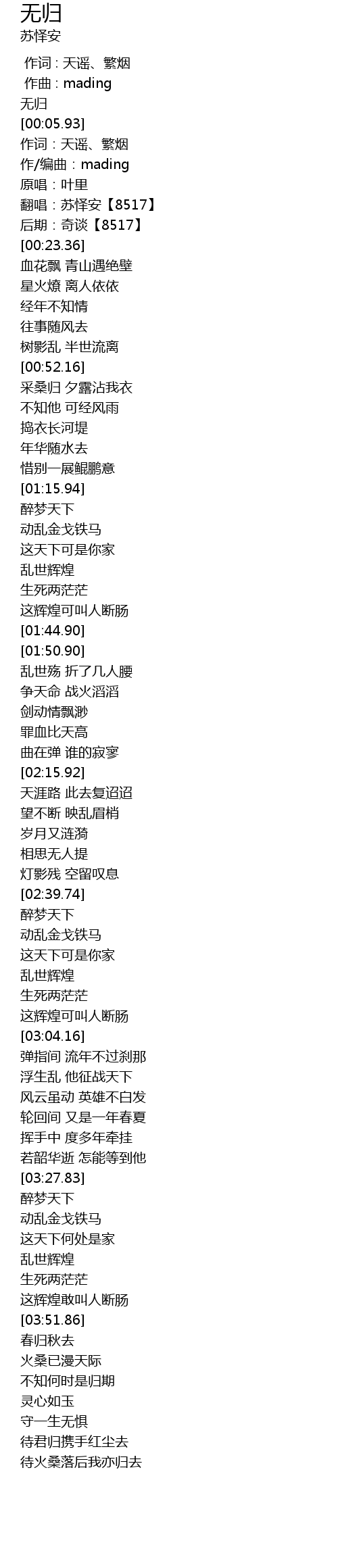 | [00:02.99] | 无归 |