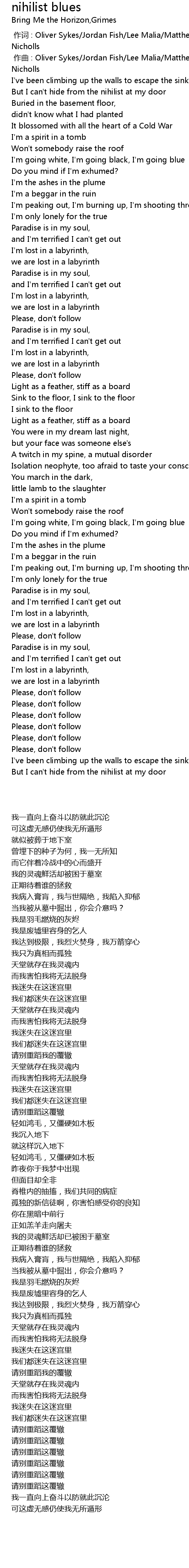 | [00:00.000] | 作词 : Oliver Sykes/Jordan Fish/Lee Malia/Matthew Kean/Matthew Nicholls |