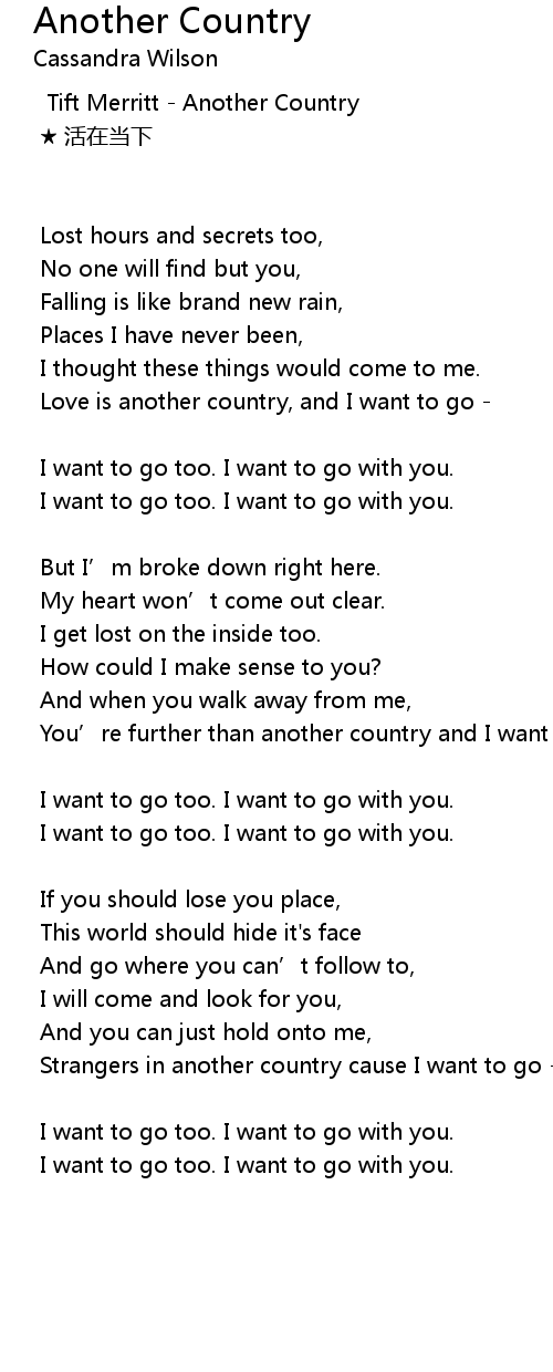 | Love is another country, and I want to go | |
