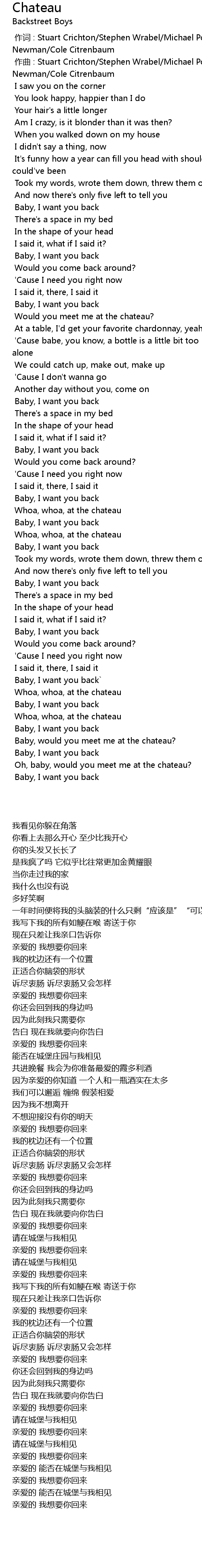 | [02:57.931] | Oh, baby, would you meet me at the chateau? |