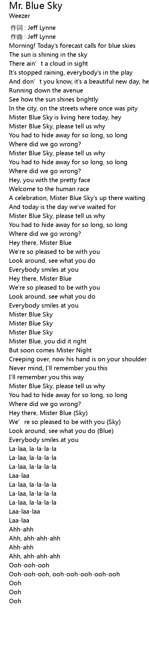 | [01:00.650] | Mister Blue Sky, please tell us why |