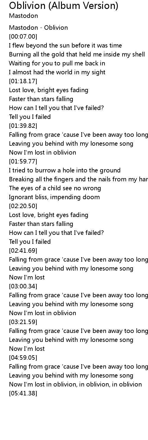 | [05:14.61] | Now I'm lost in oblivion, in oblivion, in oblivion |