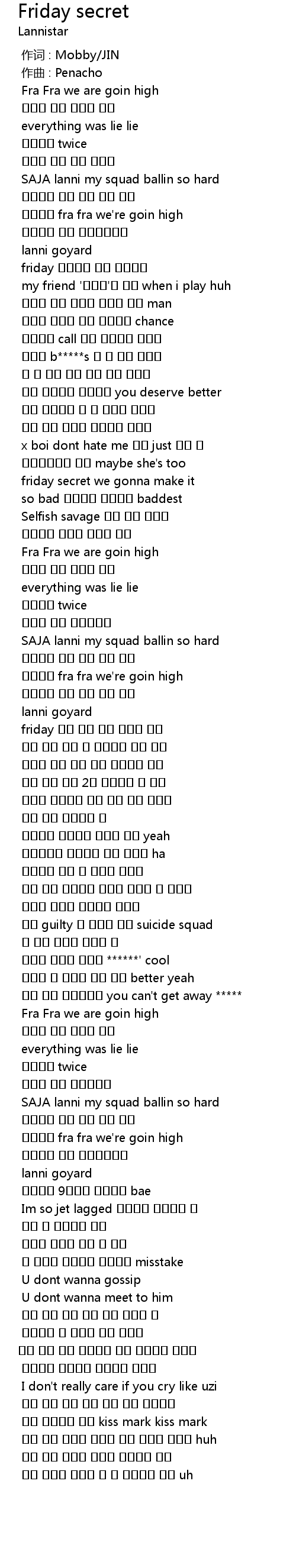 | [00:51.467] | 솔직히 b*****s 난 안 믿어 절대로 |