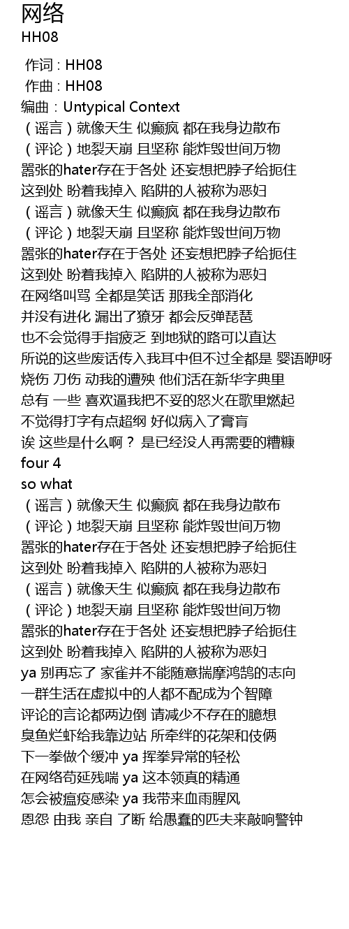 | [01:17.502] | 嚣张的hater存在于各处 还妄想把脖子给扼住 |