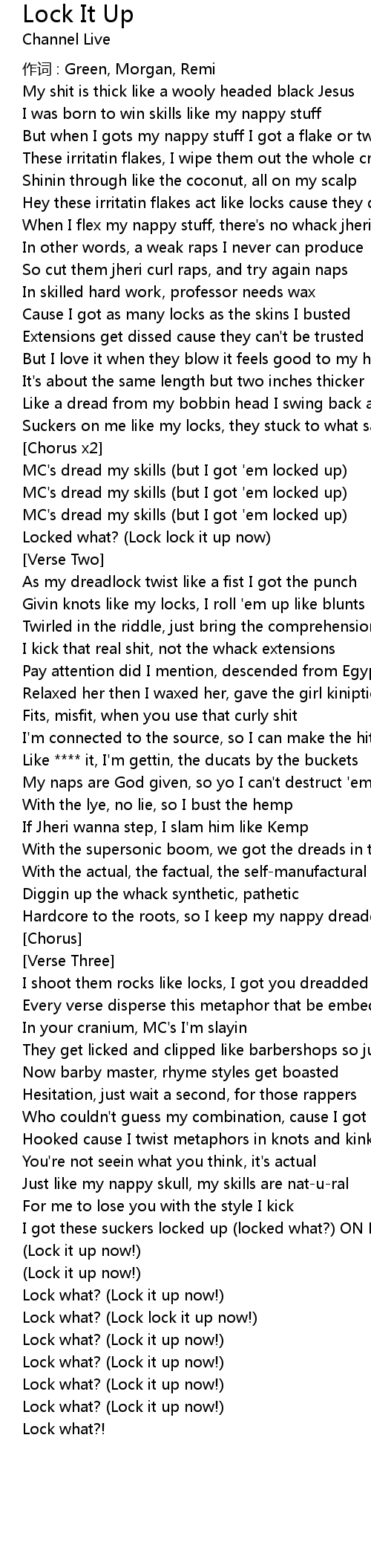 | Who couldn' t guess my combination, cause I got ' em locked | |
