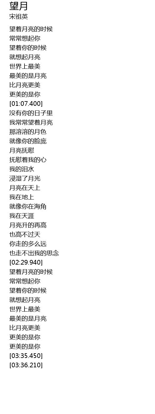 | [01:16.650] | wǒ cháng cháng wàng zhe yuè liàng |