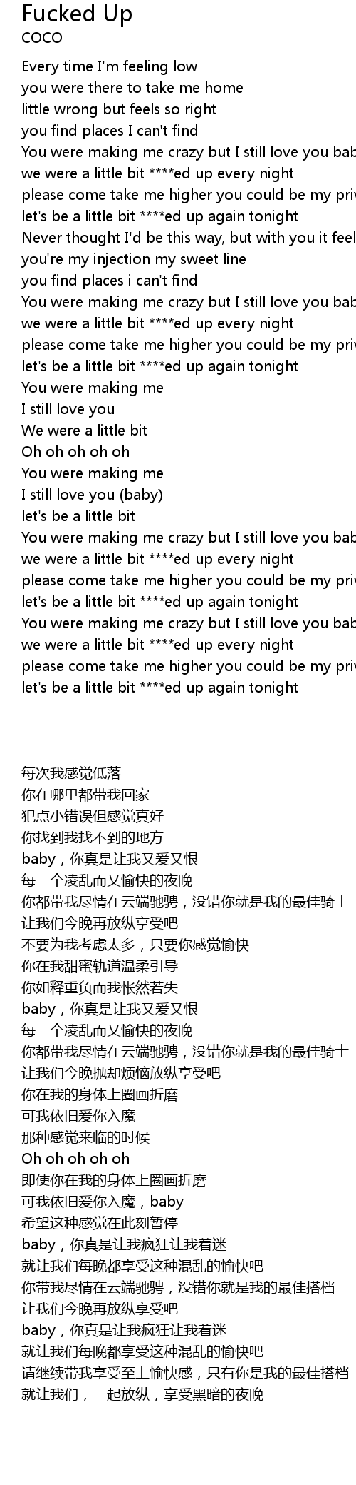| [02:36.07] | let's be a little bit ****ed up again tonight |