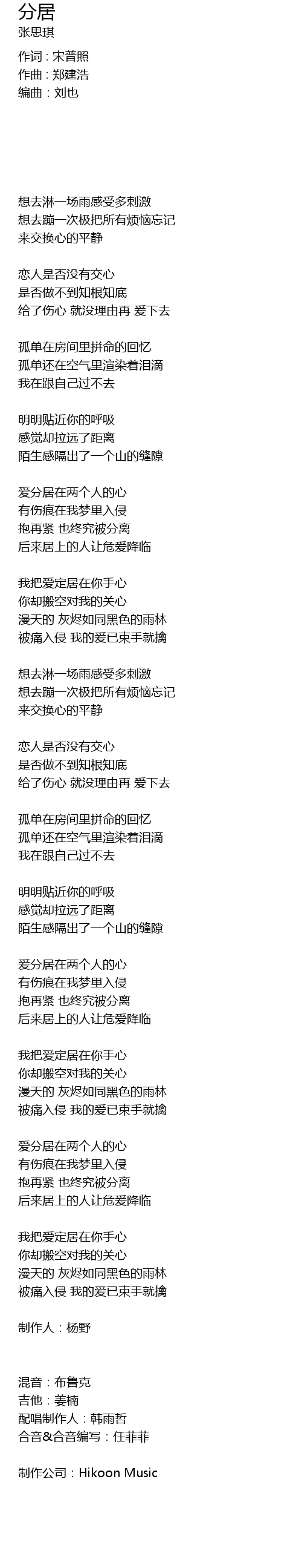 | 配唱制作人:韩雨哲 | |