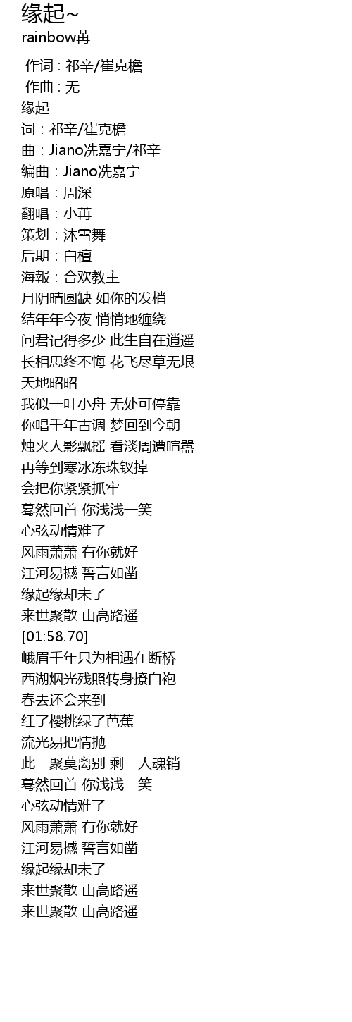 | [02:15.54] | e mei qian nian zhi wei xiang yu zai duan qiao |